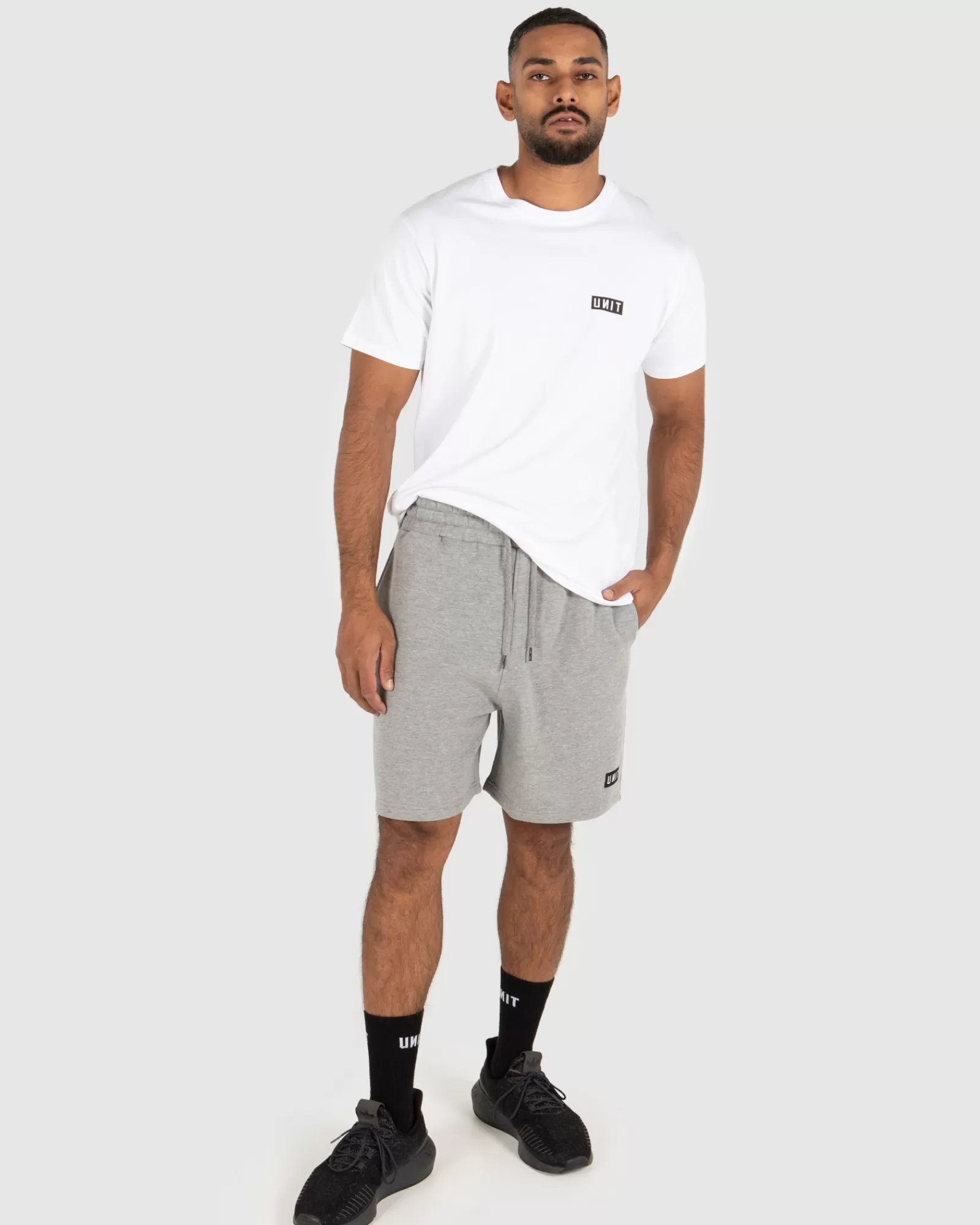 UNIT Stack Mens 19″ Track Shorts- Fleece Shorts- 80% Cotton, 20% Polyester – 320gsm- Small Front Left Leg Woven Label- S…